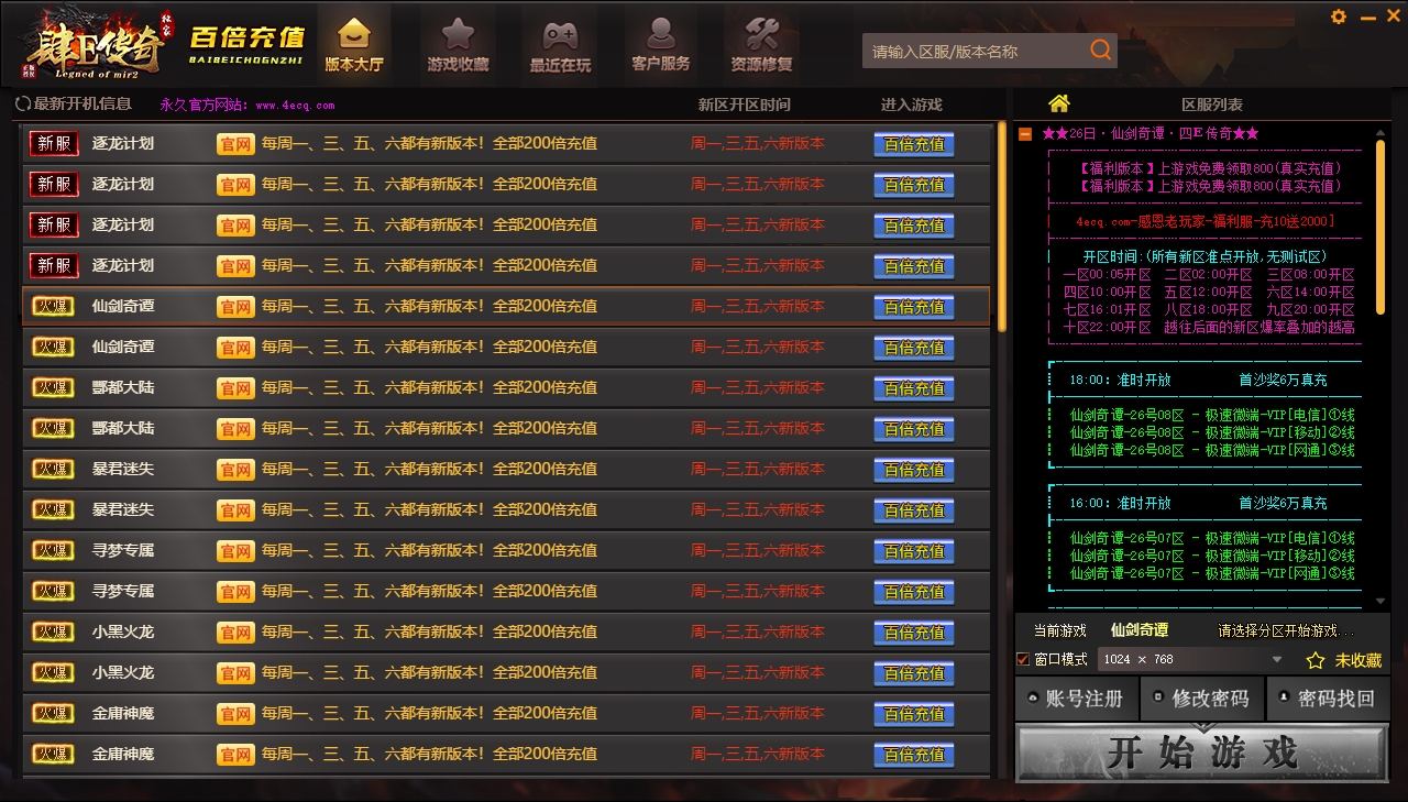 【368传奇通用登陆器】:推荐使用万能登录器,内含几百个版本,全部200倍充值!